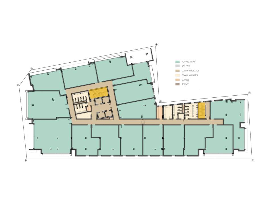 Project Brief: A 11-storey tower was to be designed, with maximum rentable office spaces and appropriate site parking.