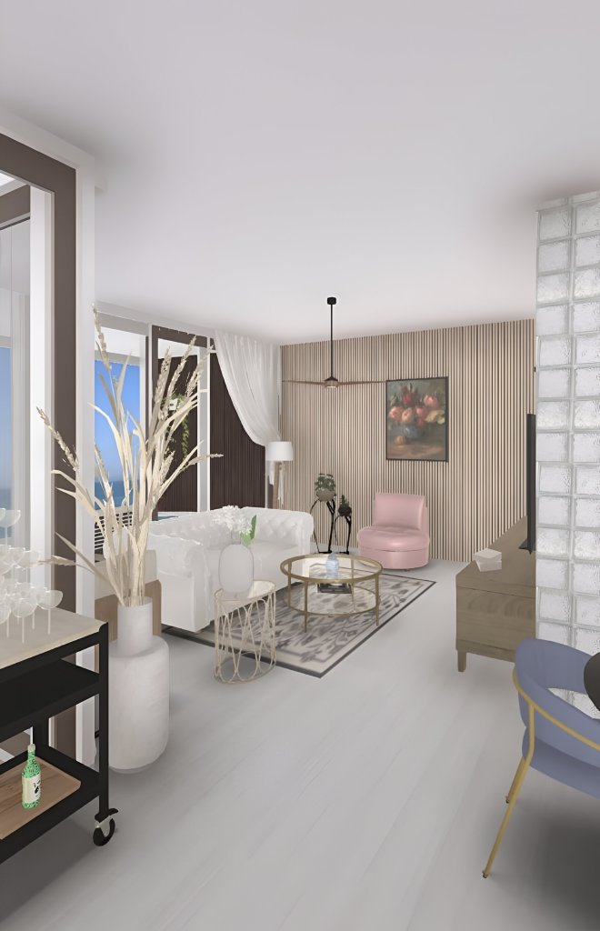 The fixtures and furnishings are from brands that fall under the category of affordable luxury.